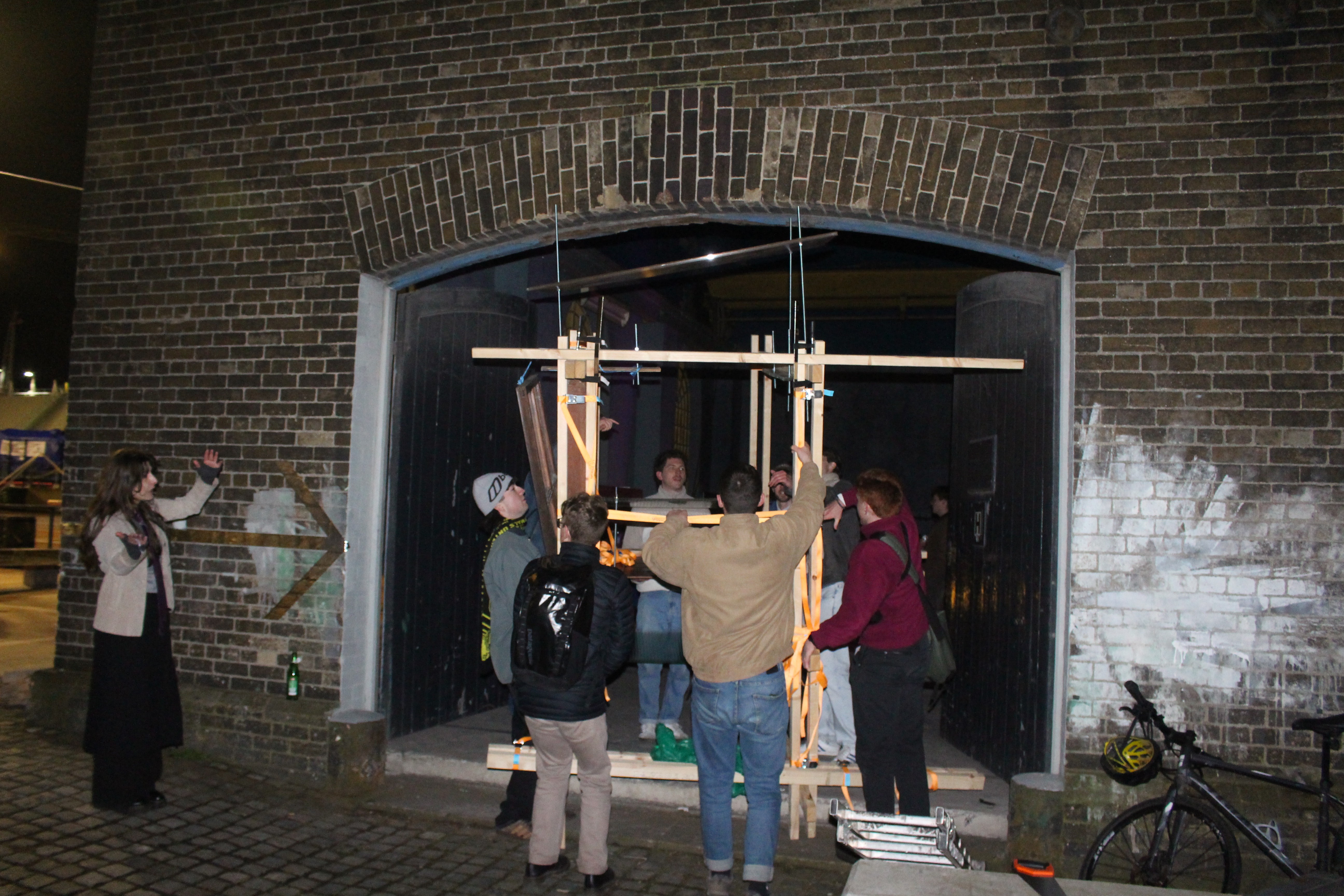The project was activated by an invitation by University College Dublin and Dublin Port Company to carry out a site-specific research project based at the pump-house building within Dublin Port - a space offering residencies and opportunities for cultural and public events. A large, mostly empty, post-industrial space left over from the remnants of a filled-in graving dock, the site and its associated pump-house building became a testing ground; for methods of community construction, public space interventions, parasitic and guerrilla architectures.