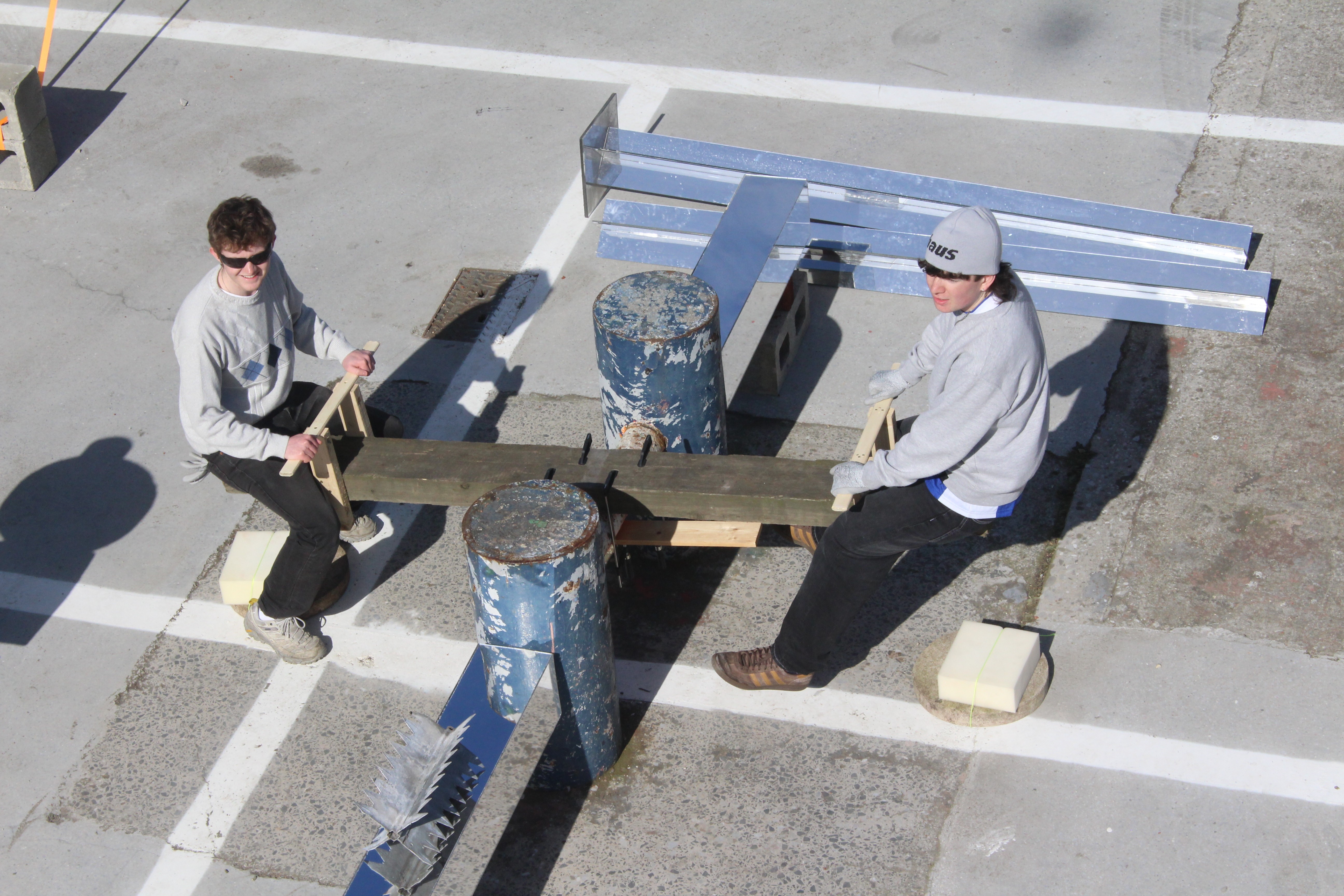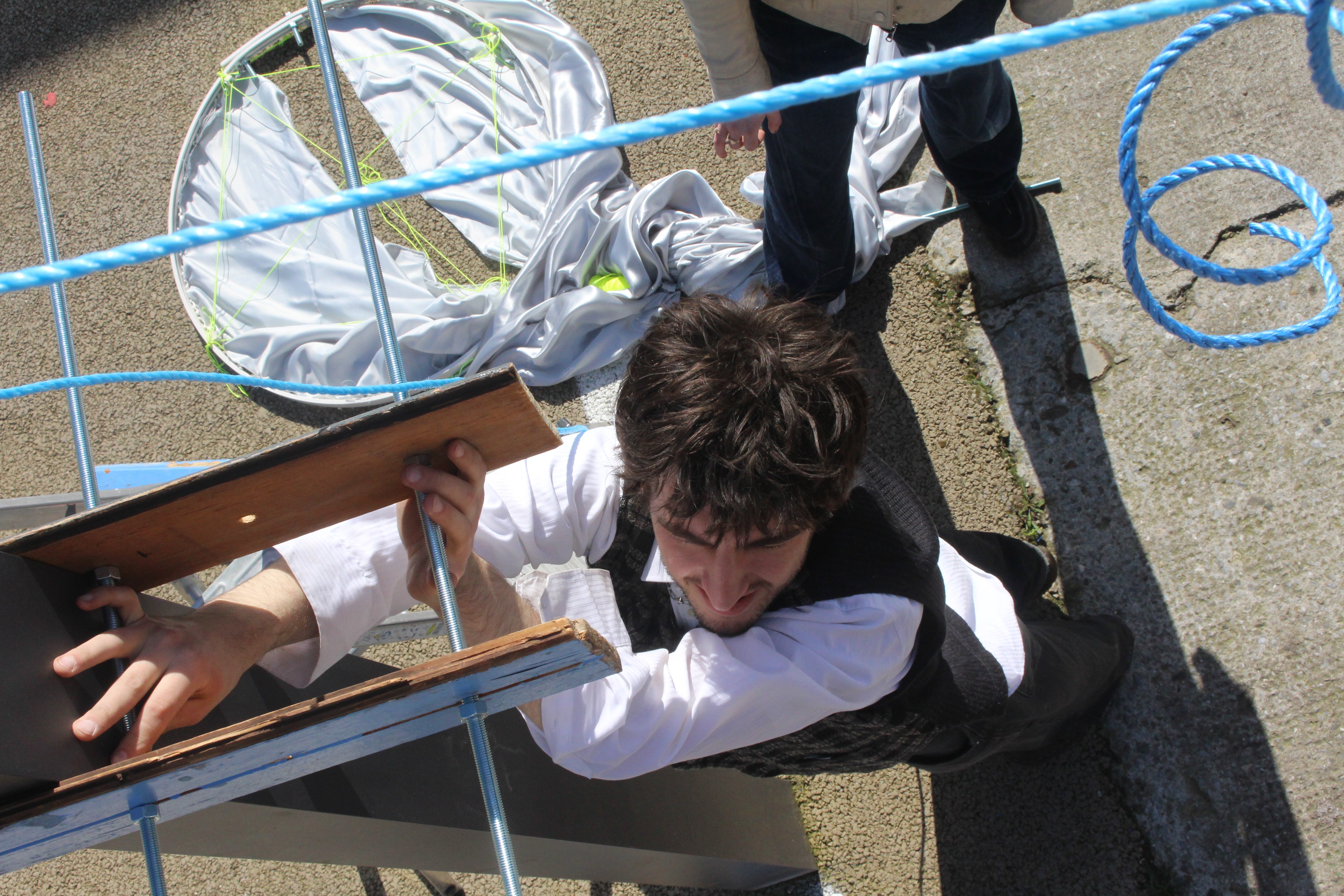 We led a intensive workshop on the site with architecture students from UCD. The principle of the workshop was based around designing and building interventions from a collection of borrowed, rented, and waste materials gathered from sites around the city including recycling centres, construction schools, salvage yards, building sites. They were bound together with removable and demountable connecting elements, such as ratchet straps etc.